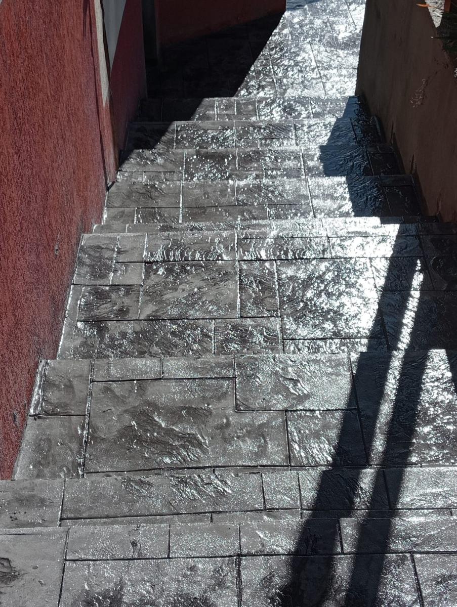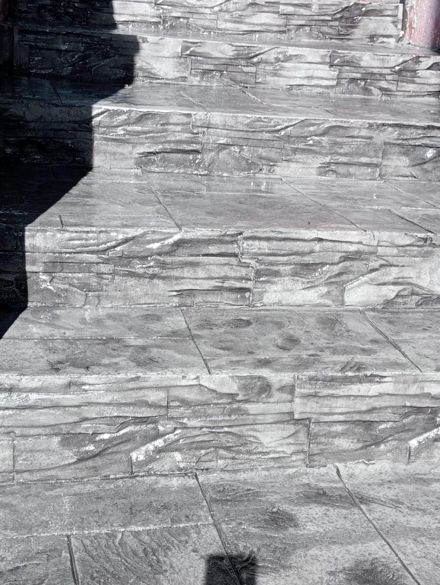 Pornind de la sape sau invelisuri din beton proaspat, si cu aplicare atenta, obtinem o acoperire de beton imprimat vertical rezistent si durabil, colorata cu diferite modele de forme si texturi.